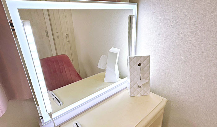 明るい照明・大きな鏡・充実したアメニティで、ベストな状態でお仕事に臨めます。
