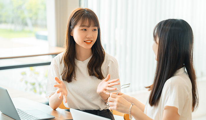 お仕事中の不安やストレスは、経験豊富なスタッフや先輩がいつでも相談に応じます。